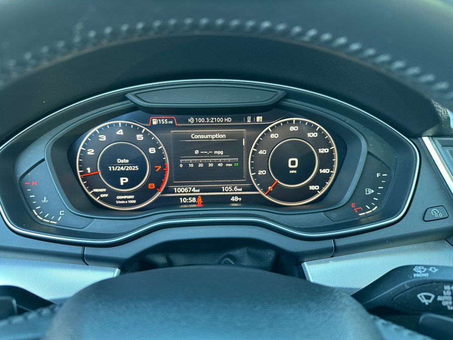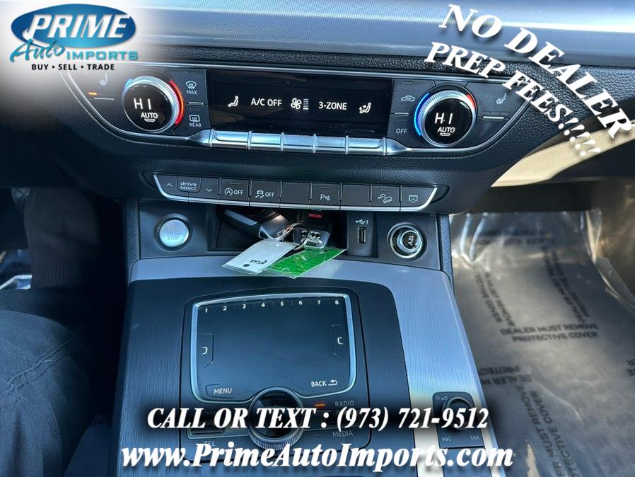 2 Seatback Storage Pockets 3 12V DC Power Outlets 3-Step Heated Front Seats 40-20-40 Folding Split-Bench Front Facing Manual Reclining Fold Forward Seatback Rear Seat w/Manual Fore/Aft 8-Way Power Front Bucket Seats -inc: 4-way driver power lumbar adjustment and driver and front-passenger comfort head rests 8-Way Power Front Bucket Seats -inc: 4-way driver power lumbar adjustment, driver and front-passenger comfort head rests and driver memory Air Filtration Analog Display Audi connect CARE Tracker System Audi connect PLUS Mobile Hotspot Internet Access Cargo Area Concealed Storage Cargo Space Lights Carpet Floor Trim Compass Cruise Control Day-Night Auto-Dimming Rearview Mirror Delayed Accessory Power Digital/Analog Display Driver And Passenger Visor Vanity Mirrors w/Driver And Passenger Illumination, Driver And Passenger Auxiliary Mirror Driver Foot Rest Driver Seat Dual Zone Front Automatic Air Conditioning Engine Immobilizer Fade-To-Off Interior Lighting FOB Controls -inc: Cargo Access Front And Rear Map Lights Front Center Armrest and Rear Center Armrest Front Cupholder Full Carpet Floor Covering -inc: Carpet Front And Rear Floor Mats Full Cloth Headliner Full Floor Console w/Covered Storage, Mini Overhead Console and 3 12V DC Power Outlets Gauges -inc: Speedometer, Odometer, Engine Coolant Temp, Tachometer, Oil Level, Trip Odometer and Trip Computer HomeLink Garage Door Transmitter HVAC -inc: Underseat Ducts and Console Ducts Illuminated Locking Glove Box Integrated Navigation System w/Voice Activation Interior Trim -inc: Genuine Wood Instrument Panel Insert, Genuine Wood Door Panel Insert, Genuine Wood Console Insert and Metal-Look Interior Accents Leather Seating Surfaces Leather Steering Wheel Leather/Metal-Look Gear Shifter Material Leatherette Door Trim Insert Manual Adjustable Rear Head Restraints Manual Tilt/Telescoping Steering Column Memory Settings -inc: Driver Seat and Door Mirrors Outside Temp Gauge Passenger Seat Perimeter Alarm Power 1st Row Windows w/Front And Rear 1-Touch Up/Down Power Door Locks w/Autolock Feature Power Fuel Flap Locking Type Power Rear Windows and Fixed 3rd Row Windows Proximity Key For Doors And Push Button Start Rear Cupholder Rear HVAC w/Separate Controls Redundant Digital Speedometer Refrigerated/Cooled Box Located In The Glovebox, Driver / Passenger And Rear Door Bins Remote Keyless Entry w/Integrated Key Transmitter, 4 Door Curb/Courtesy, Illuminated Entry, Illuminated Ignition Switch and Panic Button Remote Releases -Inc: Power Cargo Access Systems Monitor Trip Computer Trunk/Hatch Auto-Latch Valet Function